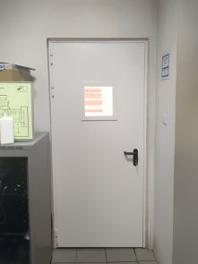 Все двери изготовлены из стали с порошковым покрытием, устойчивым к высоким температурам и механическим повреждениям. Для окраски всех дверей заказчик выбрал белый цвет RAL 9010.