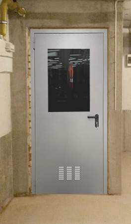 Двери в котельную всегда изготавливаются из стали. Они могут быть с окном и (или) вентиляционной решёткой, но обязательно противопожарные (показатель огнестойкости EI 45). Вентиляция необходима для корректной работы угольного или газового котла.